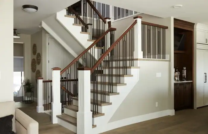 - Interjeras. Naudotas patalpose. Dekoruojant laiptus, naudojami šviesūs atspalviai, kad konstrukcija būtų lengvesnė ir būtų lengviau prižiūrėti visą konstrukciją, palyginti su gatvės. Vidaus laiptų turėklų projektavimui naudojamos medžiagos daugiausia mediena, metalas, stiklas.